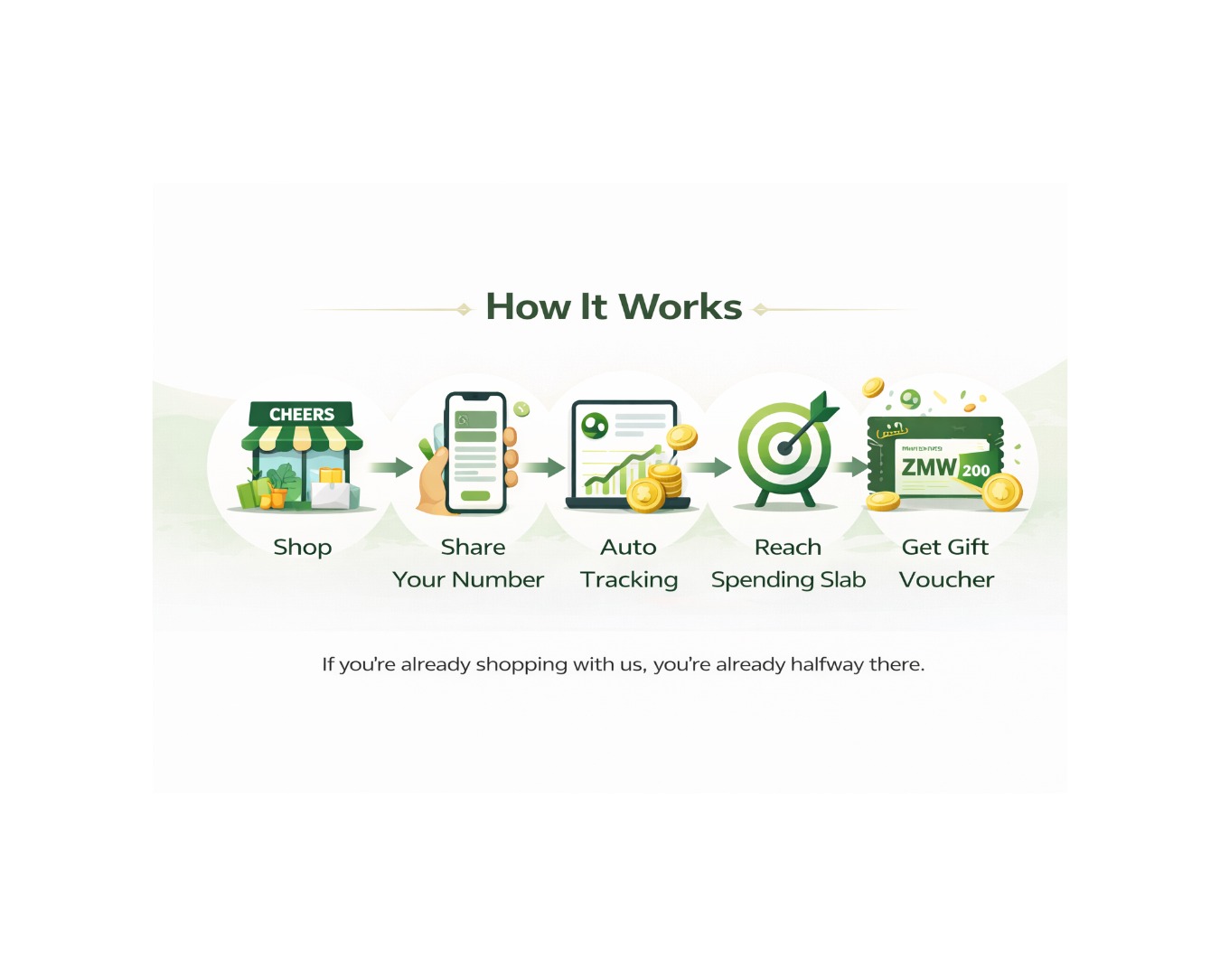 Visit your nearest Cheers store or call +260 97 3969715 for more information.